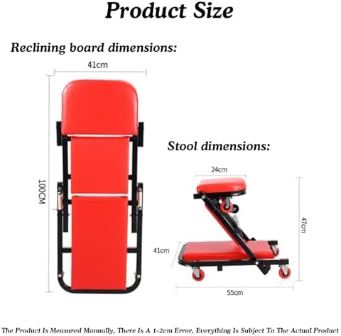 Transform your workspace with our versatile Low Profile Creeper and Automotive Seat, designed for professionals and DIY enthusiasts alike. Whether you’re in a garage, workshop, or on a car repair project, this creeper is engineered to enhance your efficiency and comfort during extended tasks. **Product Highlights:** 1. **Compact Design for Tight Spaces**: Our creeper is specially crafted to fit narrow and low areas, making it an indispensable tool for any mechanic or automotive technician. Its low profile allows for easy maneuvering beneath vehicles, enhancing your accessibility during repairs. 2. **360° Omnidirectional Wheels**: Experience effortless mobility with the integrated 360° wheels. This feature ensures smooth movement across various s, allowing you to reposition easily without interrupting your workflow. 3. **Easy-to-Clean **: Keep your workspace looking professional with our creeper’s easy-to-clean material. The is designed to resist spills and stains, ensuring it maintains a pristine appearance even after extensive use. **Specifications:** - **Product Name**: Low Profile Creeper / Automotive Creeper and Air Seat / Foldable Garage Chair / Mechanic Creeper - **Color**: As shown in the image - **Material**: Carbon Steel + Leather - **Overall Dimensions**: 100 x 41 cm (L x H) - **Folding Size**: 55 x 41 x 47 cm (L x H) - **Assembly Required**: Yes - **Maximum Load Capacity**: 300 lbs (136 kg) **Package Includes**: - 1 x Folding Car Creeper Seat - 1 set of mounting accessories **Important Notes**: - This listing is for the Folding Car Creeper Seat only; other accessories are not included. - Please be aware of slight color variations due to lighting and a 1-3 cm measurement error due to manual handling. Elevate your repair experience with our Low Profile Creeper, a reliable companion for any automotive task that combines comfort, durability, and practicality. Order now and streamline your workflow today!