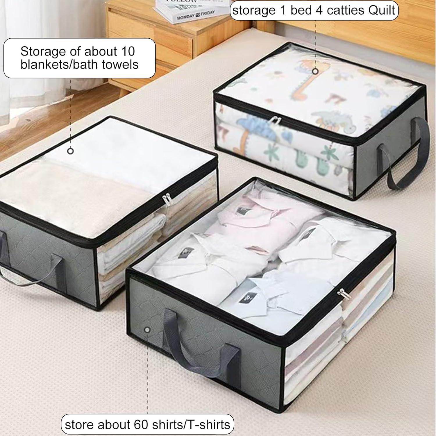 Under bed storage is parctical and functional,widely used under bed, sofa, cabinet,TV stand and crib to maximize the use of unused space. Let's say goodbye to clutter in your home!Features:1. The under bed storage are made of premium quality fabric to ensure long-lasting use. 2. This under bed storage containers clear window, offers a 360-degree view of the contents, enabling quick identification of items without needing to open the bag3. This bed bottom storage bag comes with a stainless steel zipper that is not easily breakable. No matter how full the bag is, the two-way zipper can easily slide along the lid4. The locking buckles on the lids not only prevent the lids from opening accidentally but also seal out dust and dirt5. No assembly is required. The unstructured body allows the bag to be folded & put away when not in use6. The stackable storage bins are suitable for storing seasonal clothes, books, snacks, shoes, blankets and sheetsProduct Dimensions: 19.7 "W x 16" D x 6.5 "HPackage includes:2 x Under Bed Storage Containers
