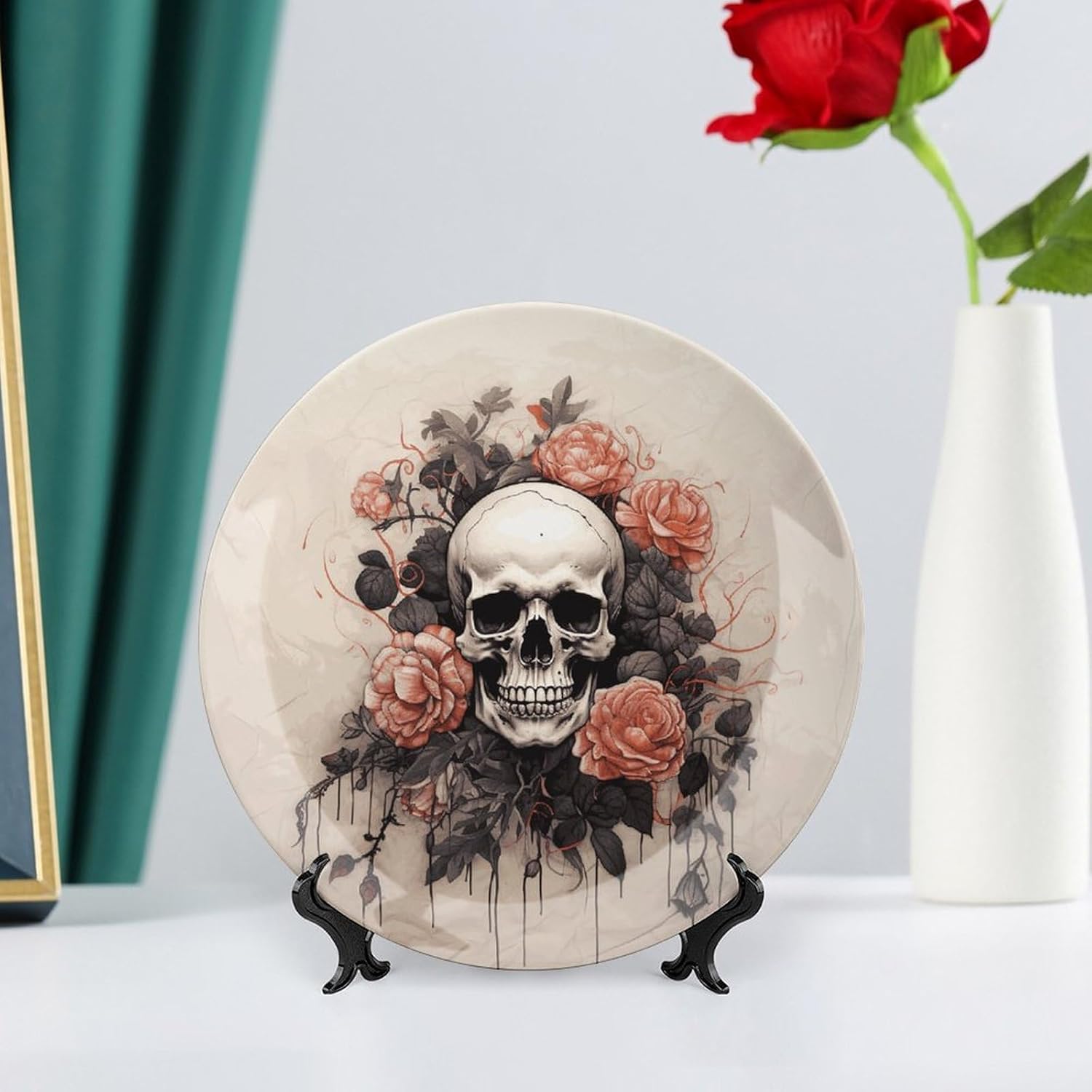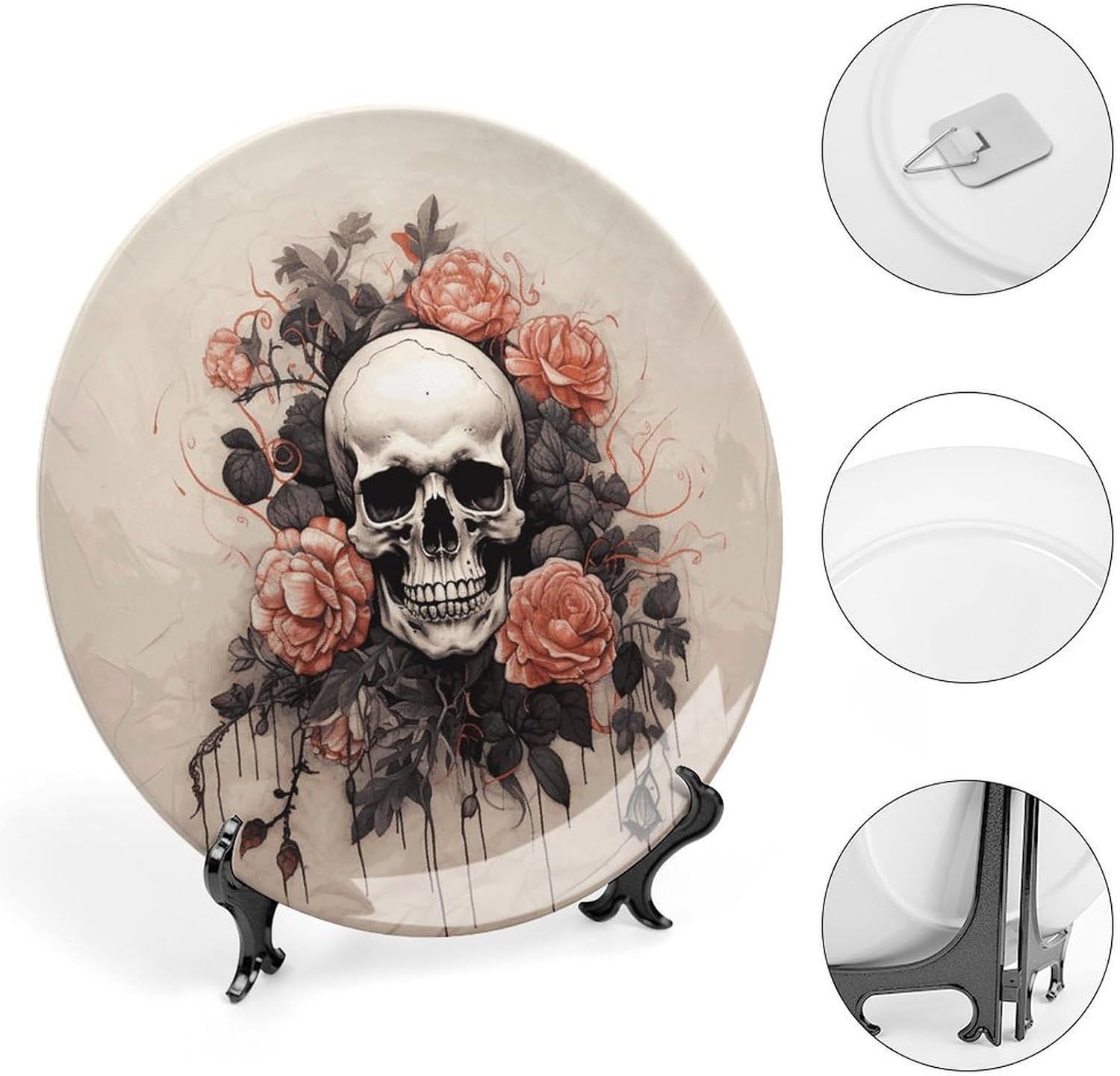 Our versatile ceramic Ancient Skull And Flowers plates are made of smooth ceramic material. The lightweight bone china plates can be easily placed anywhere you like, showcasing their decorative charm.This bone china dessert plate is available in four sizes: 6 inches, 7 inches, 8 inches, and 10 inches, making it an ideal choice for display items.Personalized decorative plates, perfect for displaying handicrafts, are an ideal choice for home décor. This vertical ceramic plate makes a wonderful gift for housewarmings, anniversaries, weddings, birthdays, Thanksgiving, New Year's, or any holiday.This French country-style ceramic plate is suitable for decorating or using in living rooms, offices, hallways, dining rooms, entrances, hotels, holiday homes, and other places.