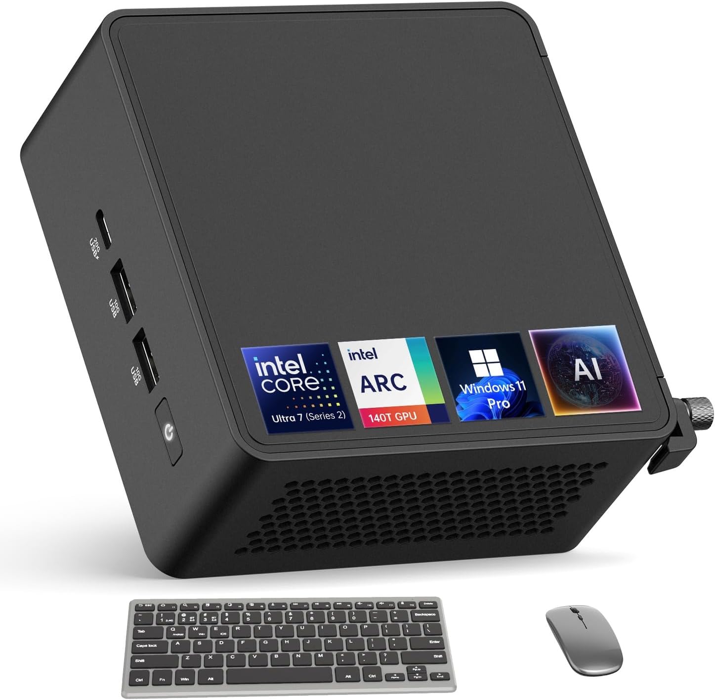 The computer is professionally upgraded and customized. The manufacturer box will be opened by our professional engineers for customizing and testing. Factory defects & blemishes are significantly reduced by our in-depth inspection & testing. We offer a 12-month warranty, please feel free to contact us if you need any support from our team. Processor ModelIntel Series 2 Core Ultra 7 Processor 255H Cores 16 Total Threads 16Max Turbo FrequencyUp to 5.1 GHz Intel Smart Cache24 MB Graphics Intel Arc 140T GPU Interface 1 x USB 3.2 Gen2 x 2 Type C3 x USB 3.2 Gen2 Type A1 x USB 2.0 Gen2 Type A 2 x HDMI 2.12 x Thunderbolt 41 x 2.5G Gigabit Ethernet Operating System Win 11 Pro Dimensions 4.6 x 4.4 x 2.1 inches Weight 1.36 lbs What's in the box ASUS NUC 15 Pro Ultra 7 255H AI Mini Pc X 1AC Adapter X 1 + Power Cord X 1VESA Mount X 1User Manual X 1Wireless Keybord X 1Wireless Mouse X 1
