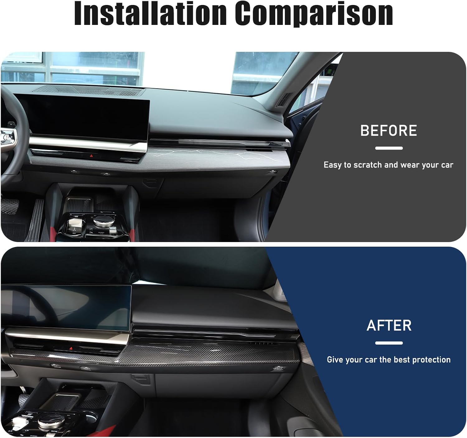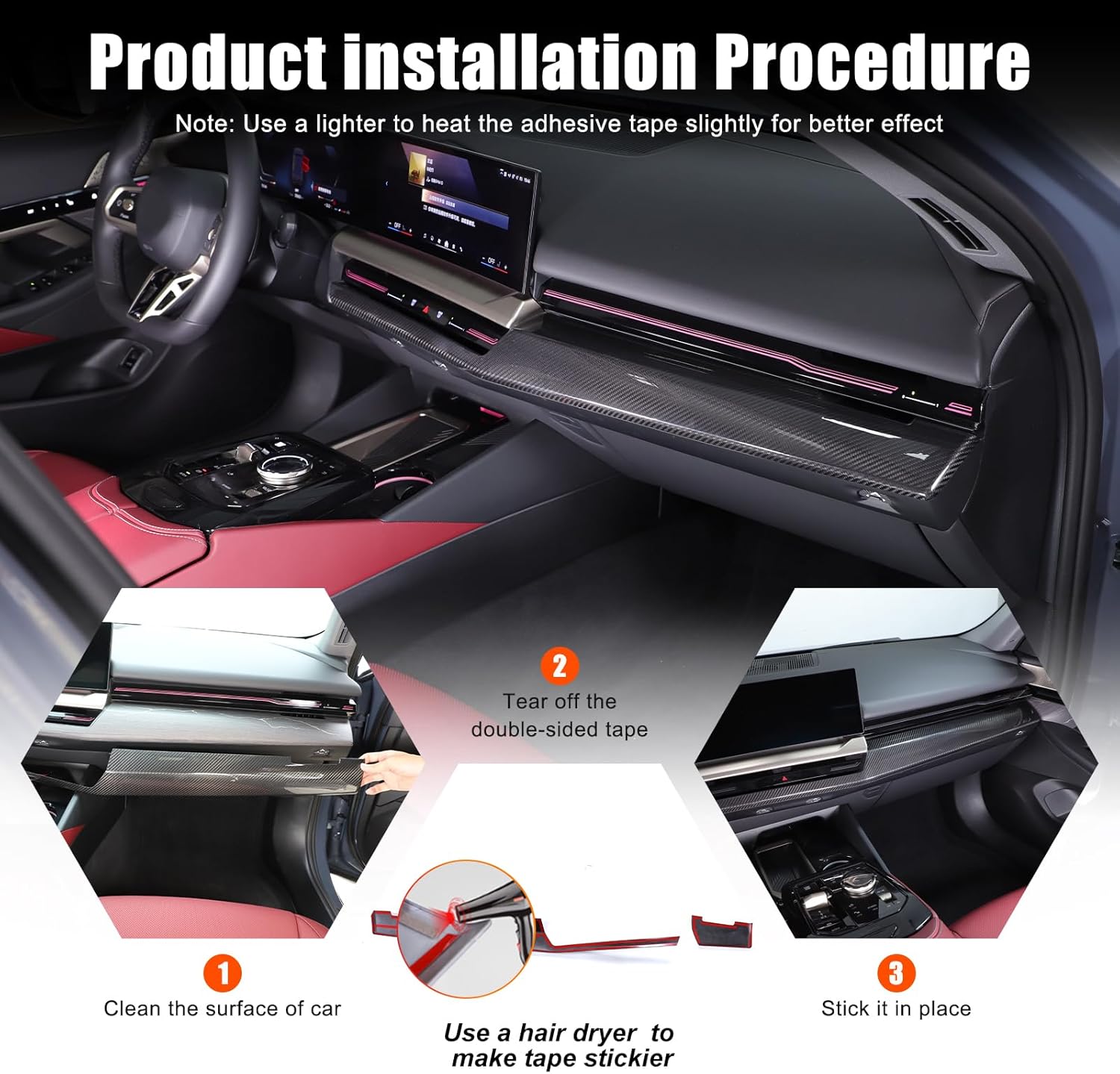 Suetlcoity offers a wide range of accessories to enhance and upgrade both the look and function of your vehicle . We sincerely appreciate your decision to purchase our products, we always committed to providing the high-quality, safe automotive decorative products and the excellent ,professional and customer service.📌Item Description:Applicable Model: for BMW 5 Series G60 2024 2025+Condition:Brand NewMaterial: Made from real carbon fiber material.It is not easy to wear and tear, will not be deformed, effective anti-scratch, and has a long service lifeAesthetics and Protection:covers the original scratches in that sticker area.makes it look more upscale,unique,cool and dynamic. And it prevents scratches, abrasions and stains while fitting perfectly without affecting the original function of the car. 📢Attention:Please check whether this item can fit on your car before purchasing.if you meet any problems when using our devices, please feel free to contact us and our staff will reply in 24hrs.💡Installation method:Step1.Wipe the surface where you want to stick. Keep dry and clean .(Very important)Step2. Determine the installation location and then make comparison of the product and installation location. If the product doesn’t fit your vehicle, please contact us immediately and do not install.Step3.Remove the protective film from the Double-sided tape on the back of the product. For better results, it is recommended to heat the double-sided tape with a hairdryer or lighter.Step4.Paste the accessories in the corresponding position and press it with your hand to make it more solid.🎁Package Include:2pcs/set of Suetlcoity Center Control Panel Dashboard Strips Trim Accessories InteriorSuetlcoity will also produce other automotive accessories, please check our store for details.